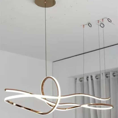 Deze prachtige moderne LED-kroonluchter omvat luxe design met functionele verlichting. De goudkleurige afwerking en het imposante formaat van 120 cm maken deze lamp een echte eyecatcher in elke ruimte.