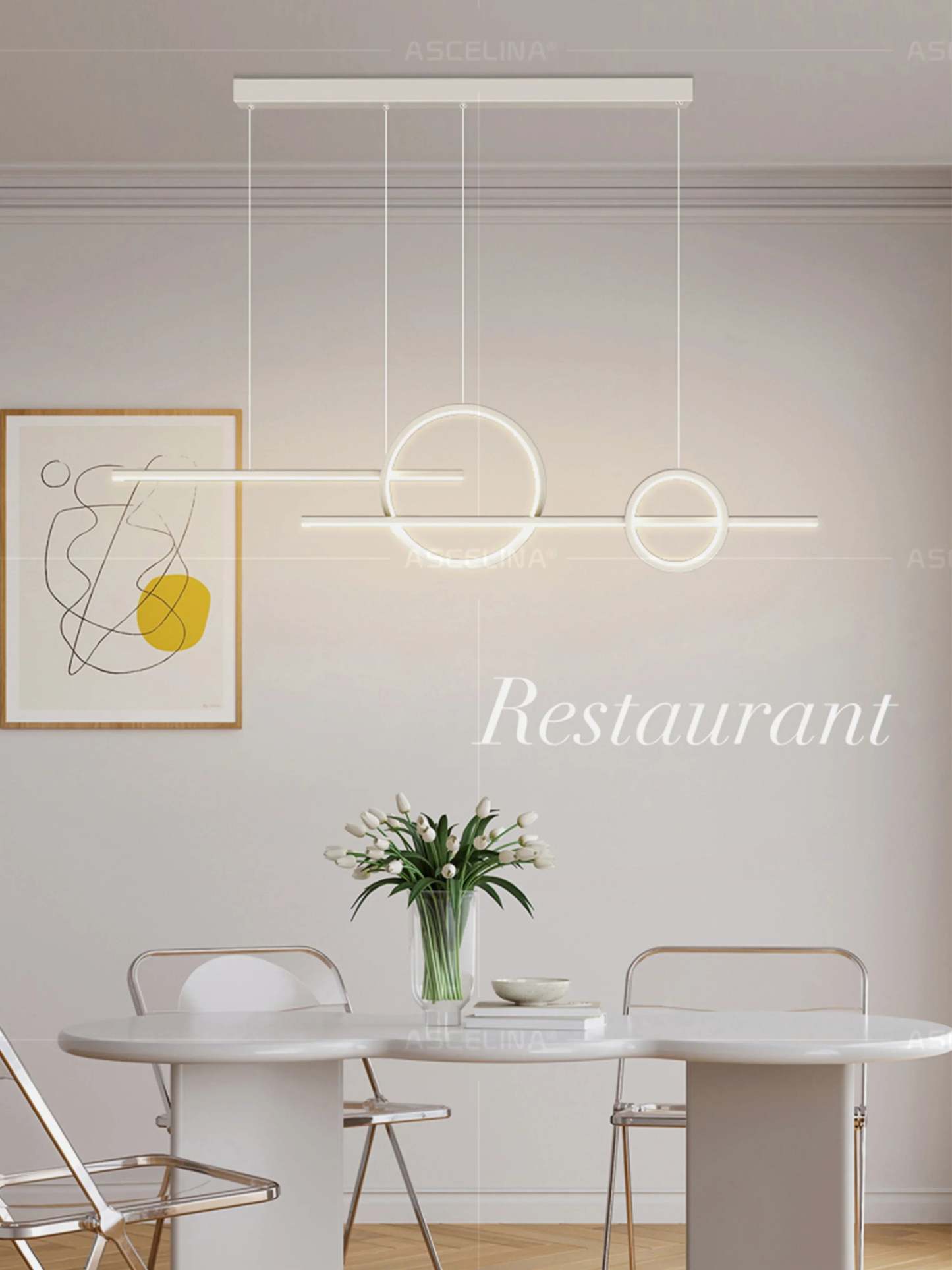 Transformeer je interieur met deze strakke, minimalistische led-kroonluchter. Perfect voor restaurants, woonkamers, bars en koffiebars - deze decoratieve lamp combineert modern design met functionele verlichting.